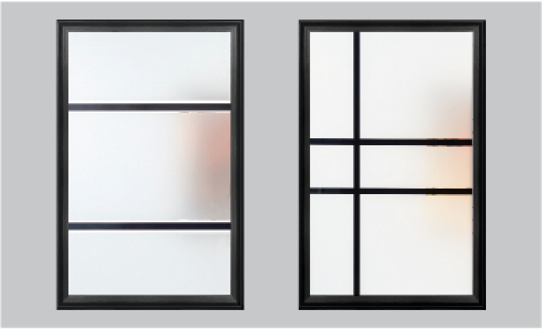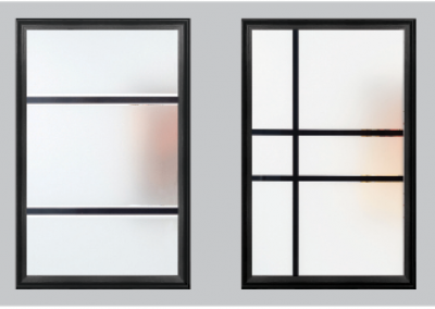 Two contemporary series which offer privacy with black ink and frost silkscreening.