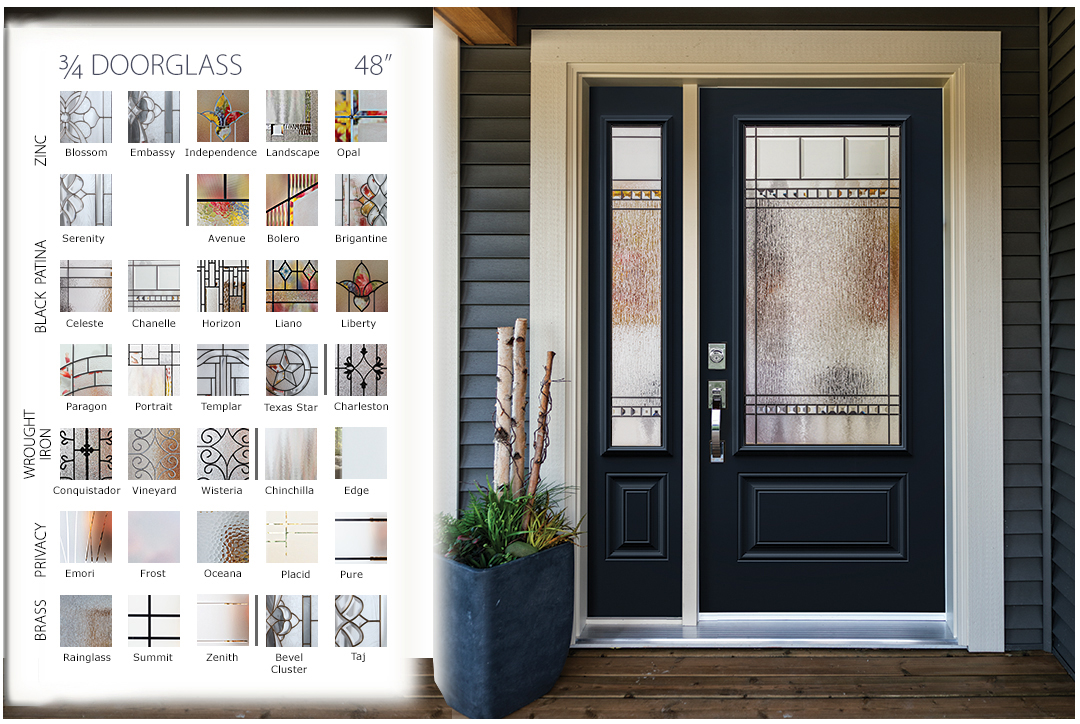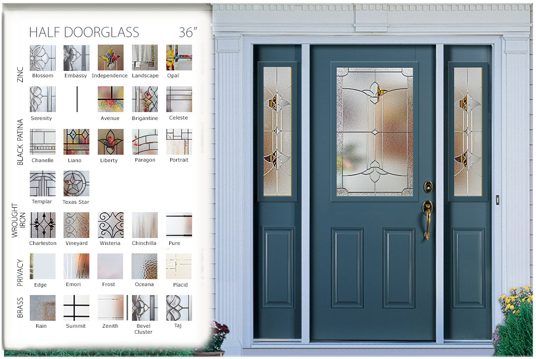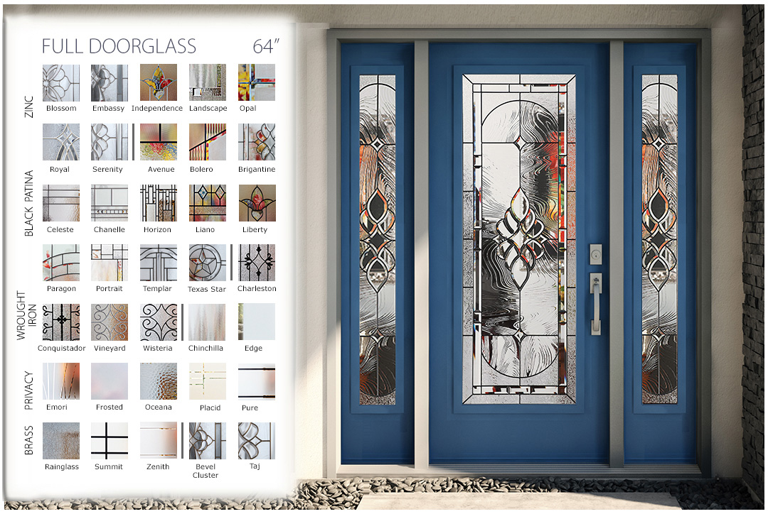Shown on these pages are a sampling of some of our more popular series and sizes. Hover over any entryway thumbnail to see that size’s decorative glass in a natural doorway setting. There are four (4) popular sizes showcasing available series in a beautiful entryway.