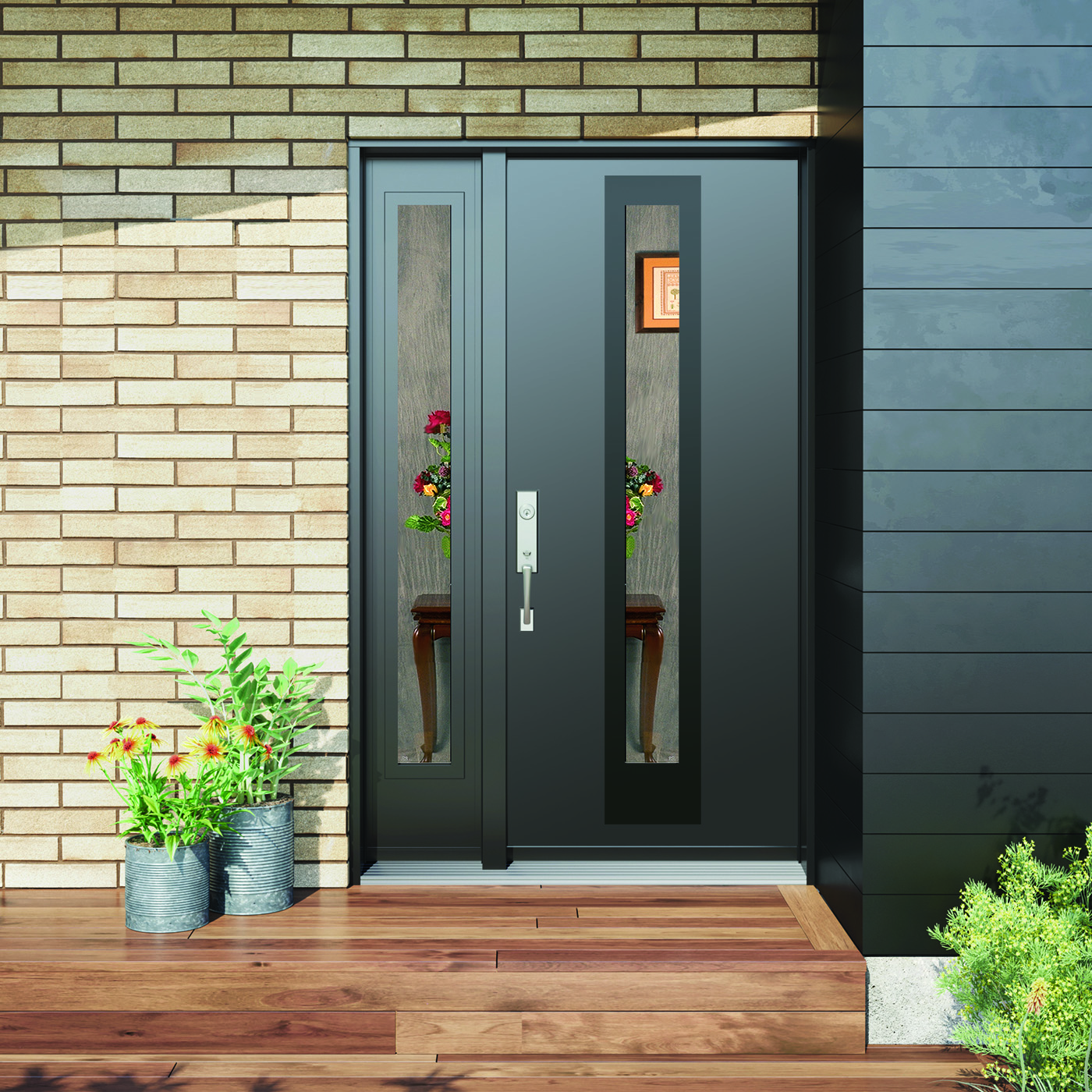 Decorative accent for doors with vertical windows. Available with an Alunox or black finish, the Accent is applied over a contemporary