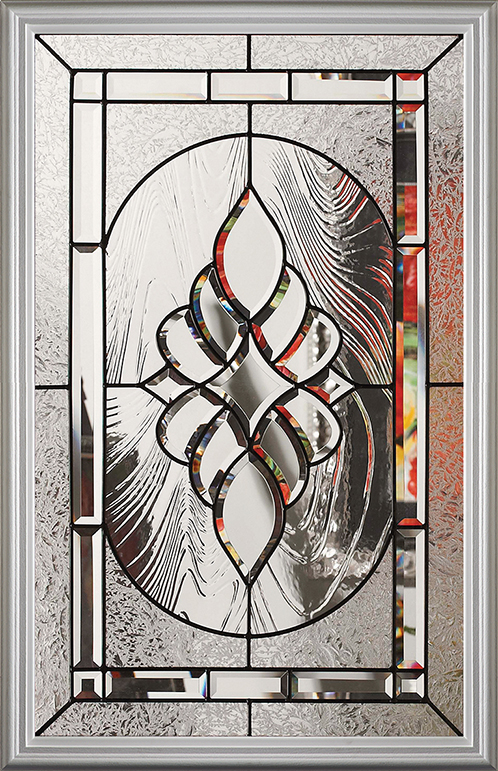 Beautiful floral pattern framed with subtle geometric shapes while offering mid-level privacy.