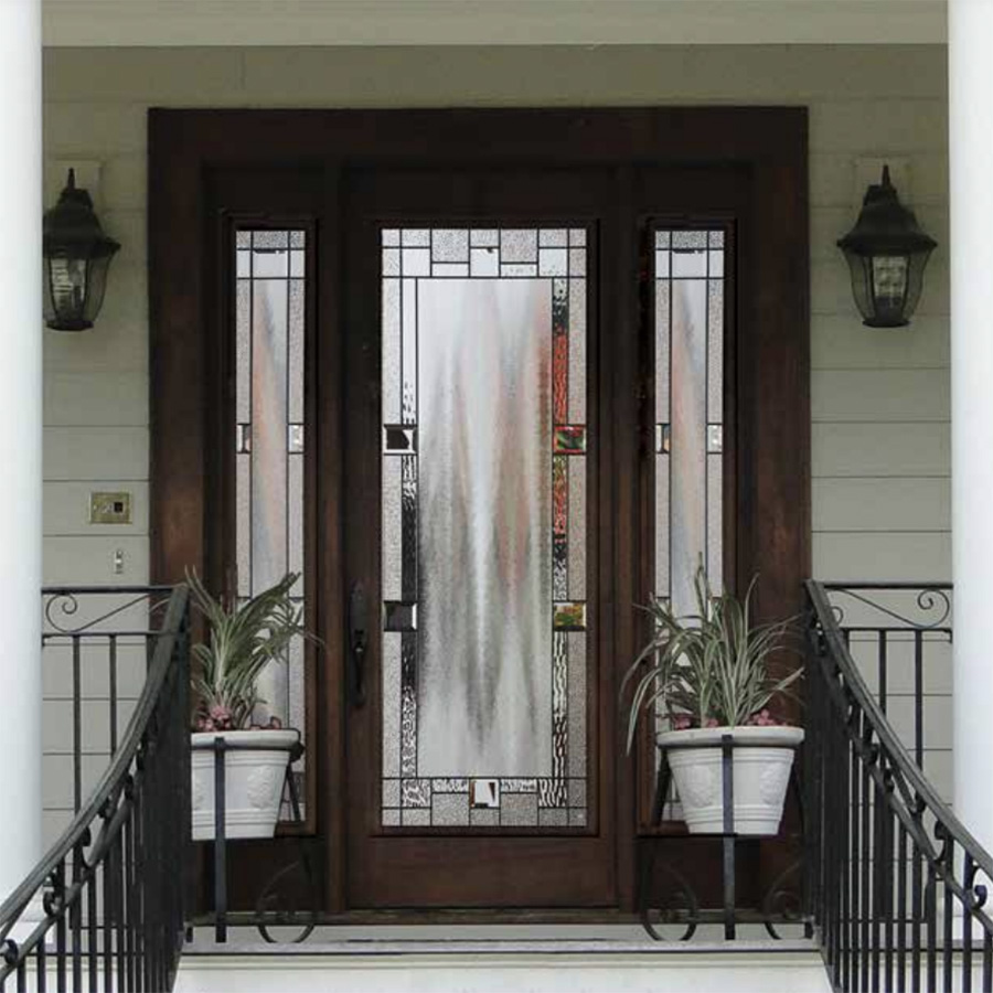 This attractive minimalist design blends textured glass with clear bevels providing simplicity and privacy.