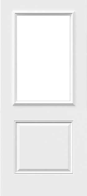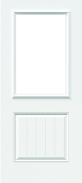 Classic 2 panel Camber Top steel door with Glide Blinds 22×36″ Doorglass, 8×36″ Sidelites.